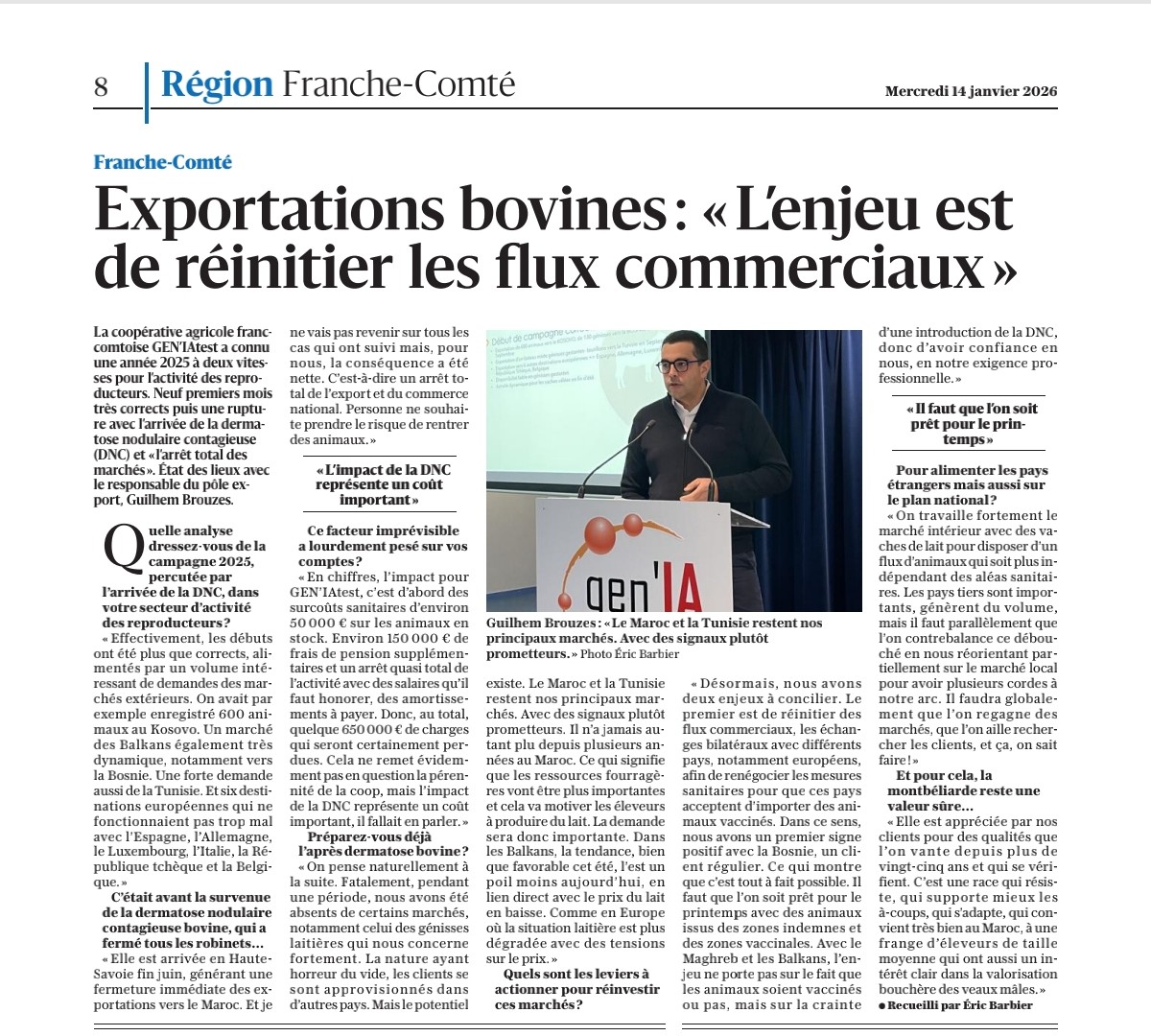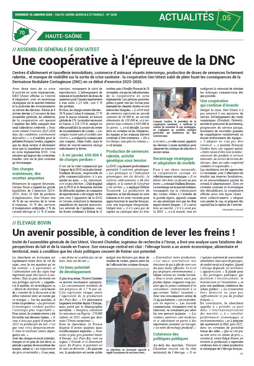 Crédit article : Alexandre Coronel dans la Haute-Saône Agricole et Rurale N°2628 du vendredi 16 janvier 2026 :