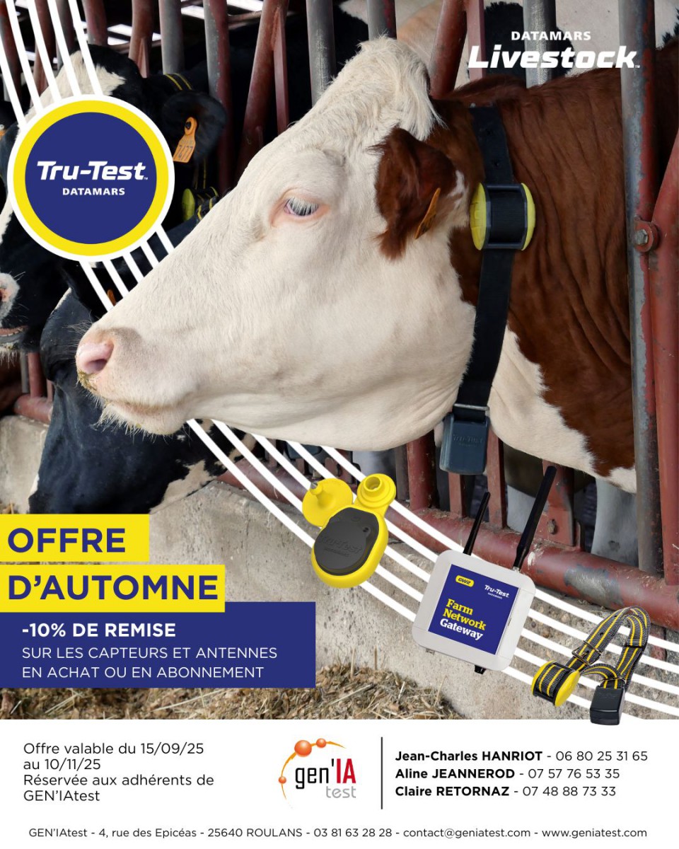 Abonnement : Profitez de 10% de remise à partir de 75 tags ou 5% de remise à partir de 41 tags sur la mensualité de l'abonnement en version LIFETIME, la nouvelle version qui allie PREMIUM sur vos vaches et génisses et YOUGNSTOCK, l'outil de suivi de santé sur vos veaux du 15/09/25 au 31/10/25.